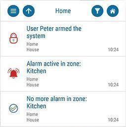 You, the user, can receive detailed notifications about every important event. This is useful not just for monitoring centres – you can see exactly what happened, when and where, and which user was involved. For example: a family member has arrived home and disarmed the system.